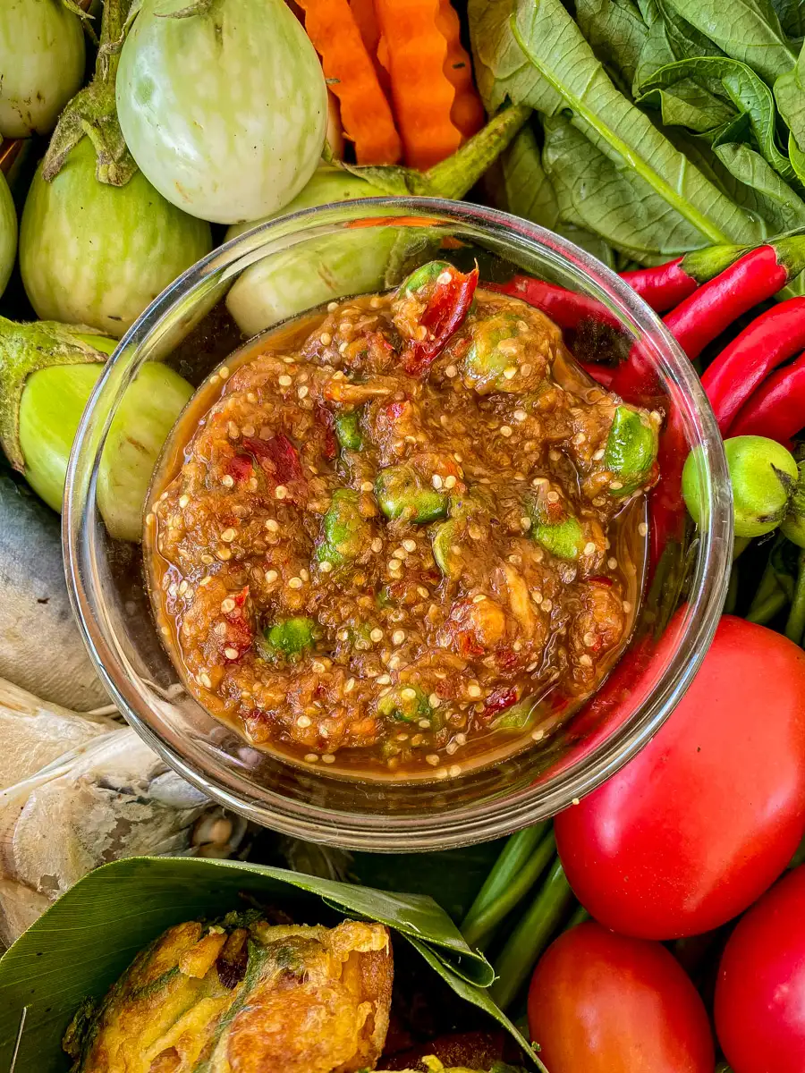 This authentic nam prik kapi recipe makes a bold Thai shrimp paste dipping sauce packed with umami and deep savory flavor. It’s a spicy chili dip that’s ready in 10 minutes and great with fresh vegetables, fish, rice, and more.