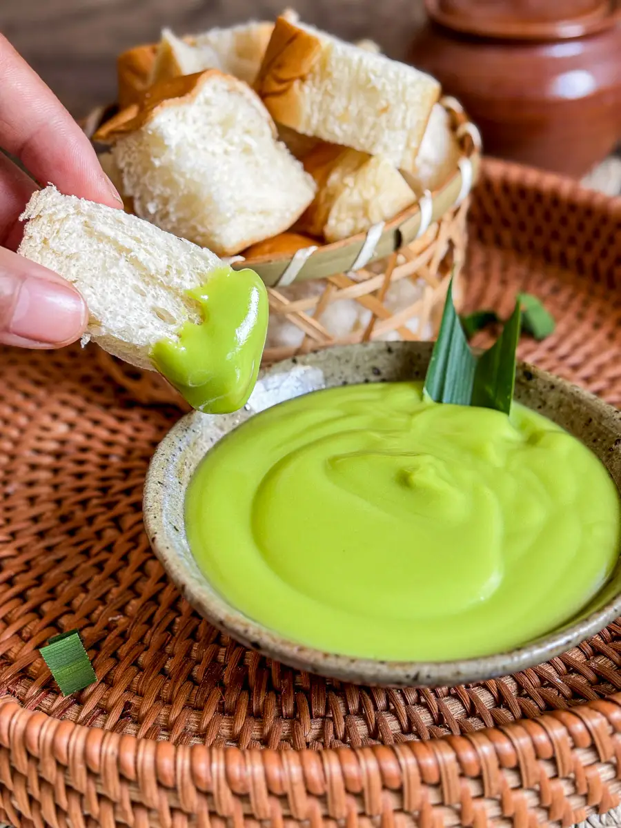 Some versions are steamed until firm and sliceable, while others, like this recipe, are cooked into a smooth pandan custard cream that’s perfect for dipping bread or spreading on toast.